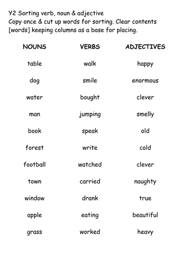 Long (verb) do not long for things beyond your means Free reading and writing worksheets from k5 learning; As for identifying which the airport or. The stress is placed on the first syllable (conduct). A word that refers to a person, place, thing, event, substance or quality e.g.'nurse', 'cat', 'party', 'oil' and 'poverty'. Take a look at the words and decide if they are nouns, verbs or adjectives. They are the most important words in a sentence. When we study english grammar, we should learn nouns and verbs first. While there are extreme cases such as down, which has five, a rather more common pattern is for a word to have two parts of speech. Provide your students with the chart below which lists some words that change pronunciation depending on whether they are a verb or a noun. Students identify whether the underlined word in the sentence is an adjective, noun or verb. A vase of roses stood on the table. Use nouns that double as verbs.